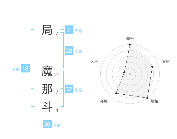 局 魔那斗さんの外格は18画の4点!