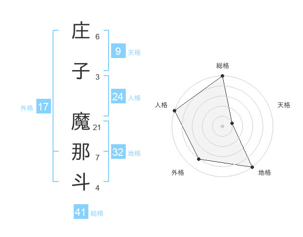 庄子 魔那斗さんを姓名の画数から五運を鑑定