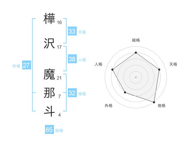 樺沢 魔那斗さんを姓名の画数から五運を鑑定
