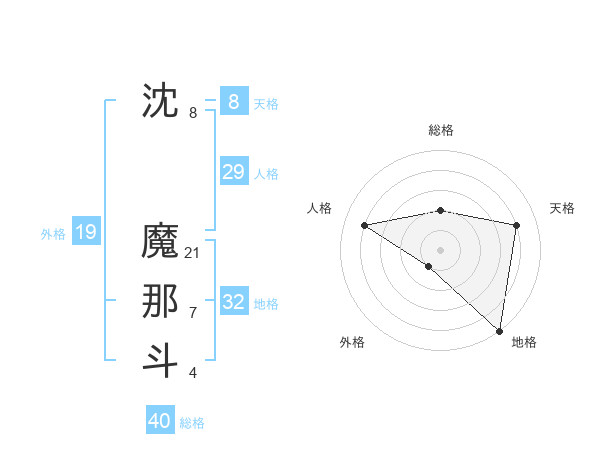 沈 魔那斗さんを姓名の画数から五運を鑑定