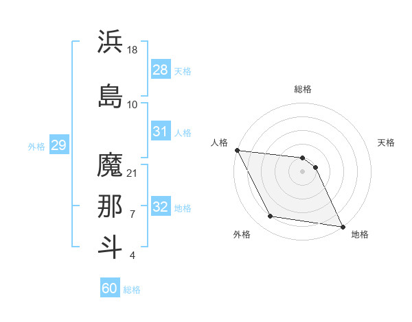 浜島 魔那斗さんの外格は29画の4点