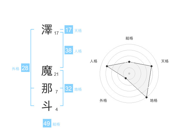 澤 魔那斗さんを姓名の画数から五運を鑑定