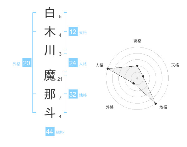 白木川 魔那斗さんを姓名の画数から五運を鑑定