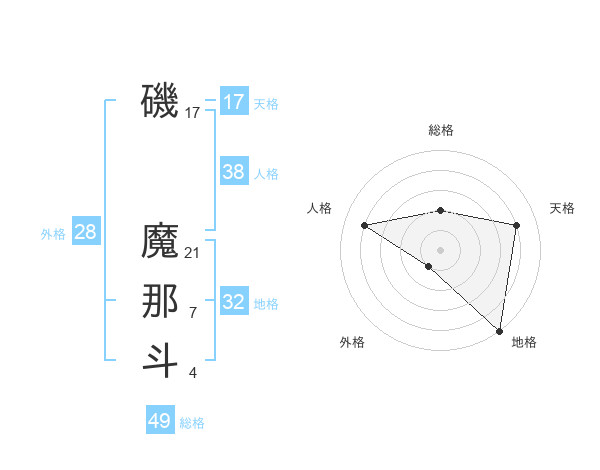 磯 魔那斗さんを姓名の画数から五運を鑑定