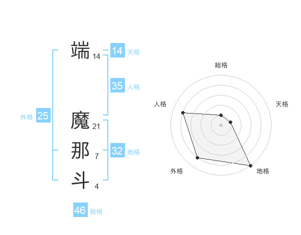 端 魔那斗さんの天格は14画の1点!