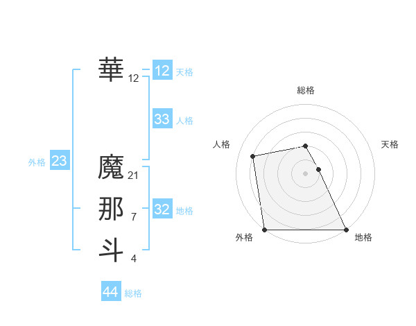 華 魔那斗さんの外格は23画の5点!