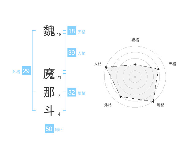 魏 魔那斗さんを姓名の画数から五運を鑑定