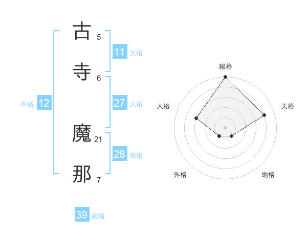 古寺 魔那さんを姓名の画数から五運を鑑定