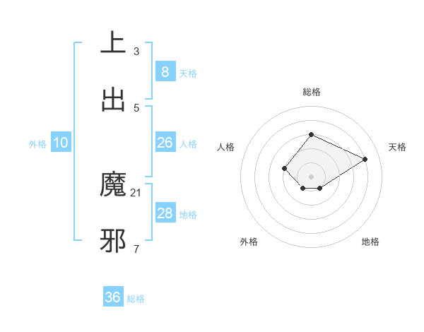 上出 魔邪さんを姓名の画数から五運を鑑定