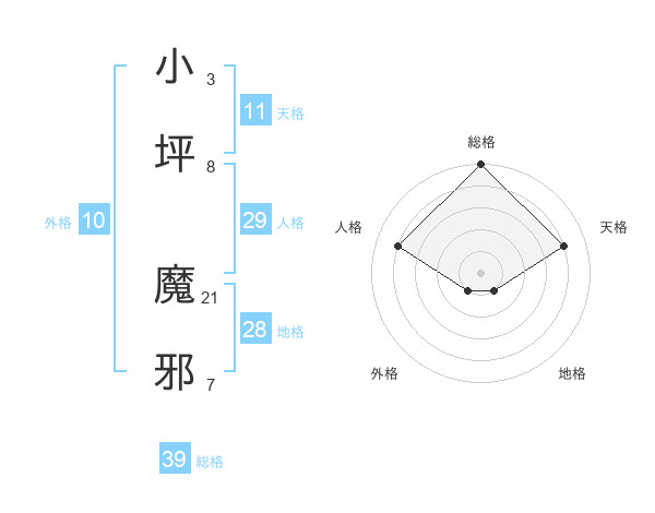 小坪 魔邪さんの総格は39画の5点!