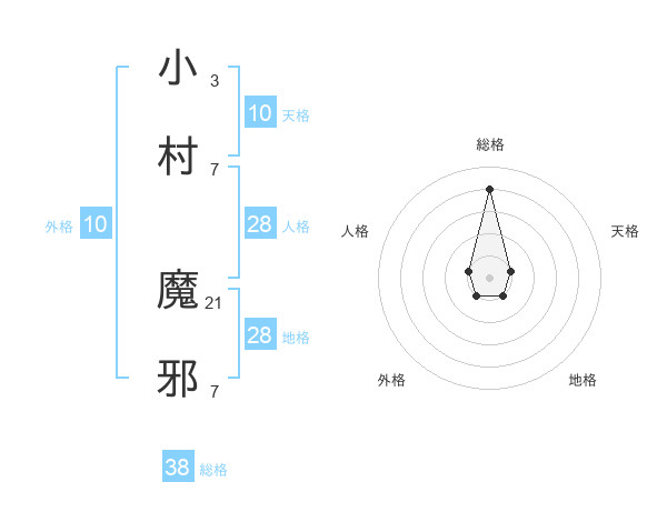 小村 魔邪さんを姓名の画数から五運を鑑定