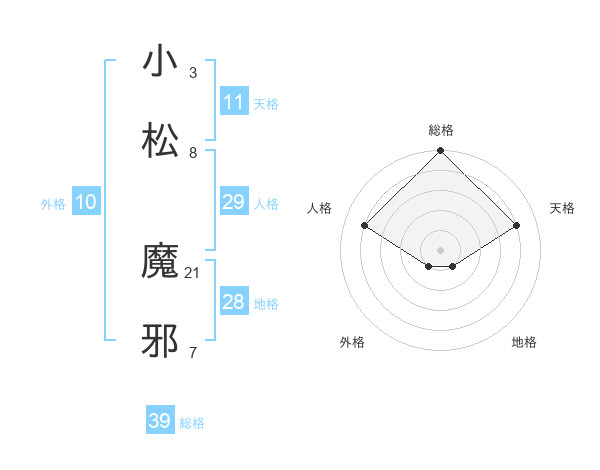 小松 魔邪さんの総格は39画の5点!