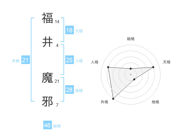 福井 魔邪さんの天格は18画の4点!