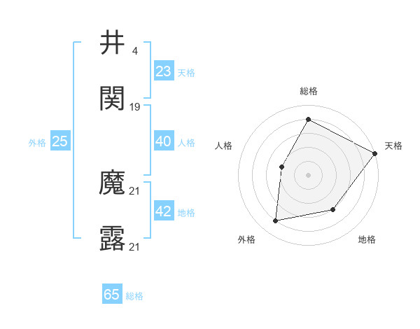 井関 魔露さんの総格は65画の4点!