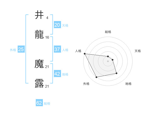 井龍 魔露さんを姓名の画数から五運を鑑定