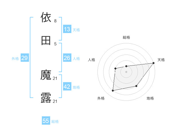 依田 魔露さんの天格は13画の5点!