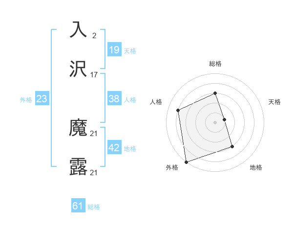 入沢 魔露さんを姓名の画数から五運を鑑定