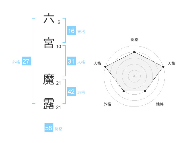 六宮 魔露さんを姓名の画数から五運を鑑定