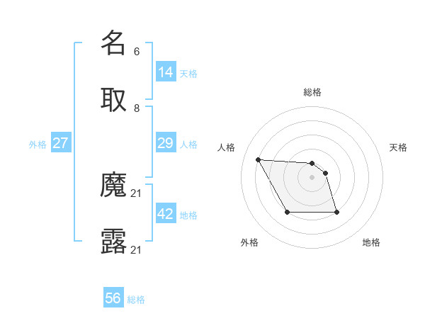 名取 魔露さんの総格は56画の1点!
