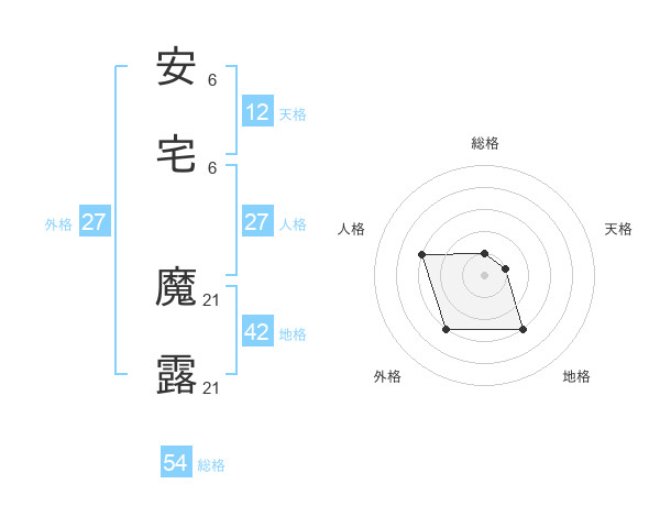 安宅 魔露さんの総格は54画の1点!