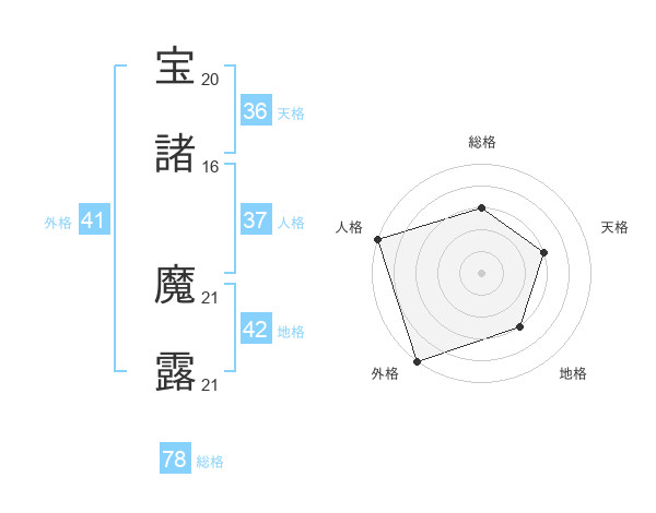 宝諸 魔露さんを姓名の画数から五運を鑑定