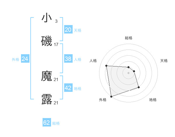 小磯 魔露さんの天格は20画の1点!