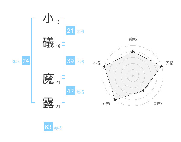 小礒 魔露さんを姓名の画数から五運を鑑定