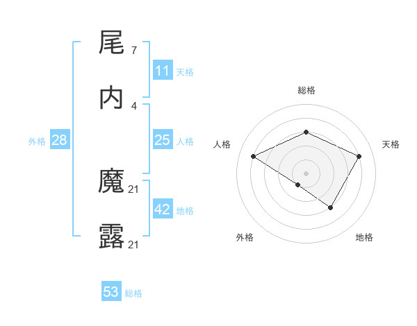 尾内 魔露さんの天格は11画の4点!