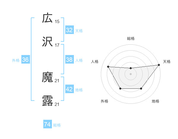 広沢 魔露さんを姓名の画数から五運を鑑定