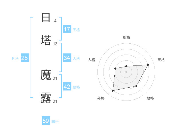 日塔 魔露さんの天格は17画の4点!