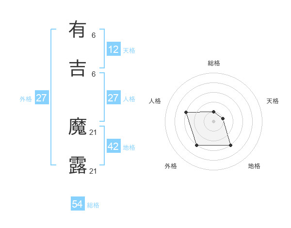 有吉 魔露さんの外格は27画の3点!