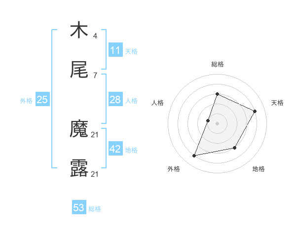 木尾 魔露さんの総格は53画の3点!