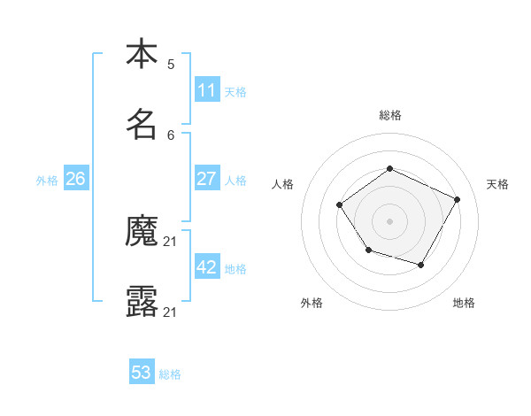 本名 魔露さんの総格は53画の3点!