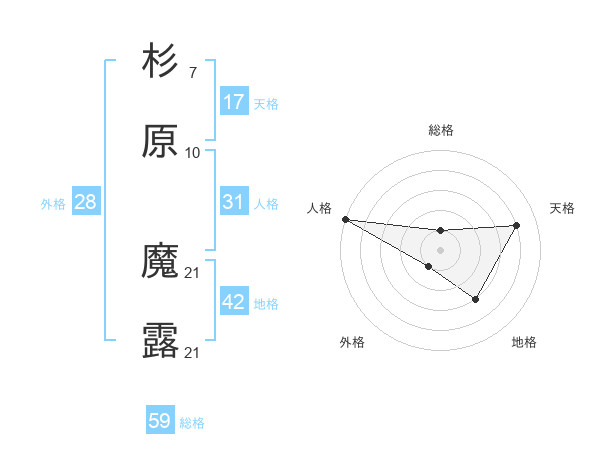 杉原 魔露さんの総格は59画の1点!