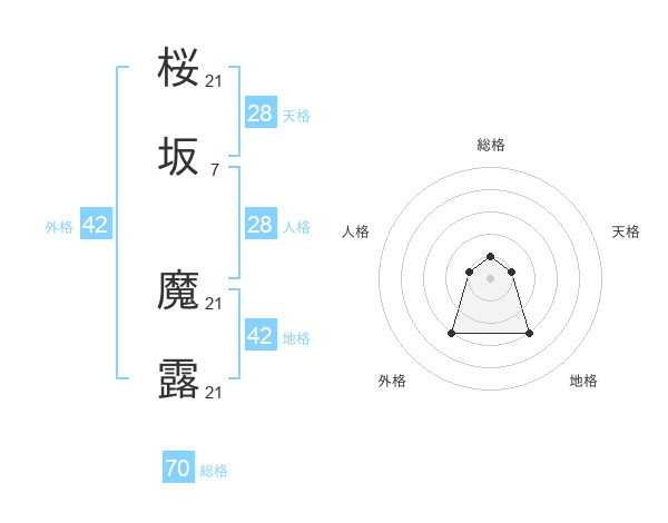 桜坂 魔露さんの総格は70画の1点!