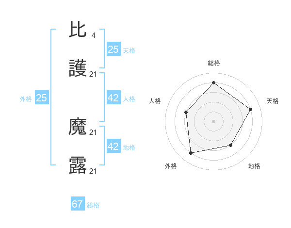 比護 魔露さんの総格は67画の4点!