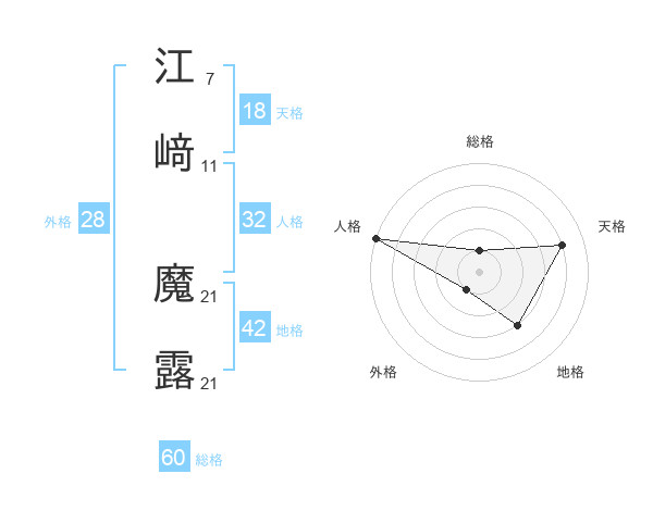 江﨑 魔露さんを姓名の画数から五運を鑑定