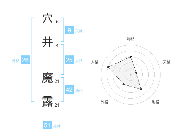 穴井 魔露さんの総格は51画の3点!