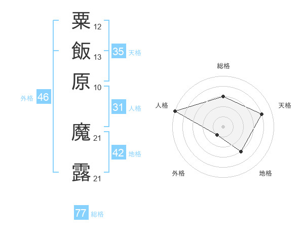 粟飯原 魔露さんを姓名の画数から五運を鑑定