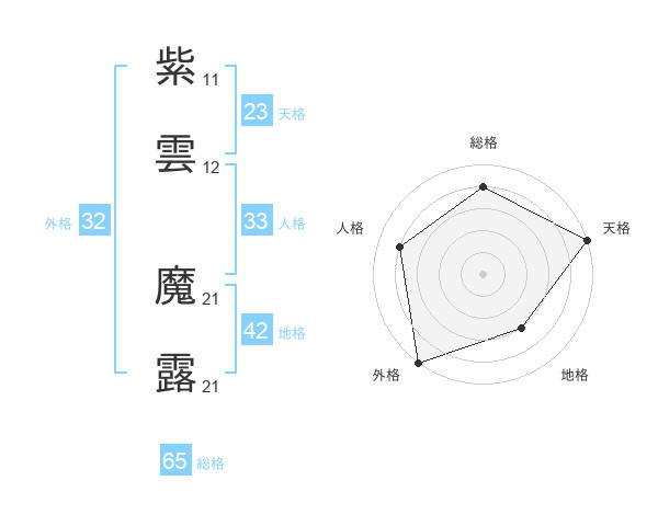 紫雲 魔露さんの総格は65画の4点!