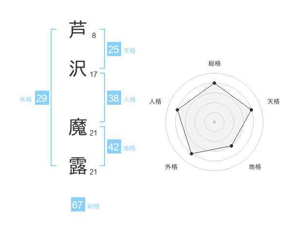 芦沢 魔露さんを姓名の画数から五運を鑑定