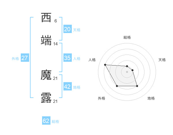 西端 魔露さんの総格は62画の1点!