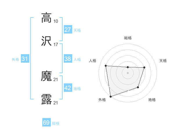 高沢 魔露さんの外格は31画の5点!