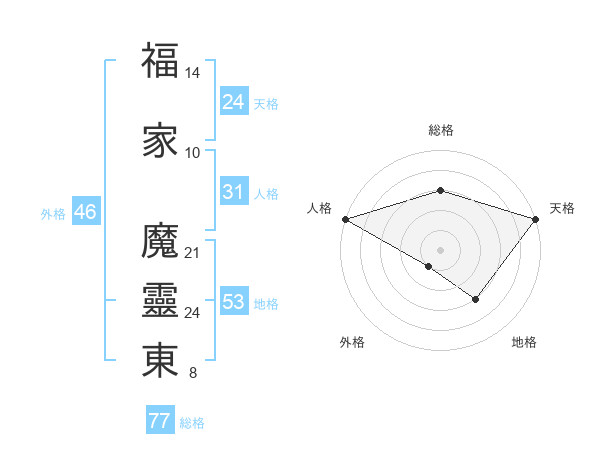 福家 魔靈東さんの総格は77画の3点!
