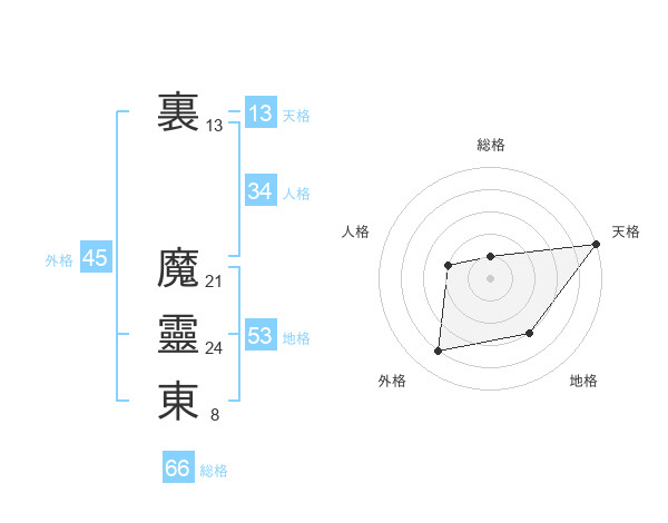 裏 魔靈東さんの天格は13画の5点!
