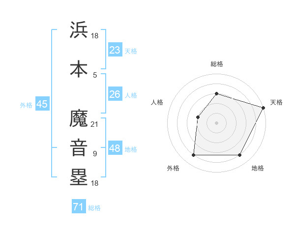 浜本 魔音塁さんの総格は71画の3点!