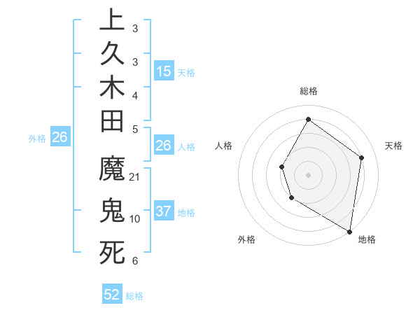 上久木田 魔鬼死さんを姓名の画数から五運を鑑定