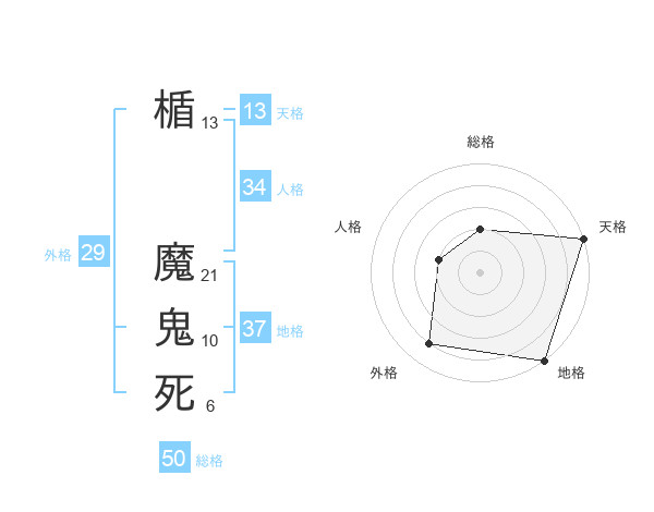 楯 魔鬼死さんを姓名の画数から五運を鑑定