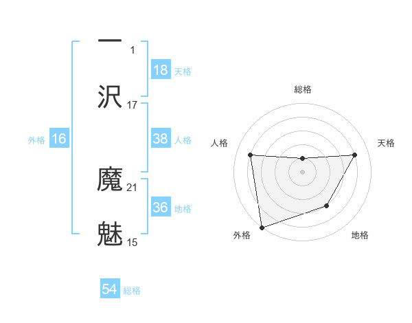 一沢 魔魅さんの外格は16画の5点!