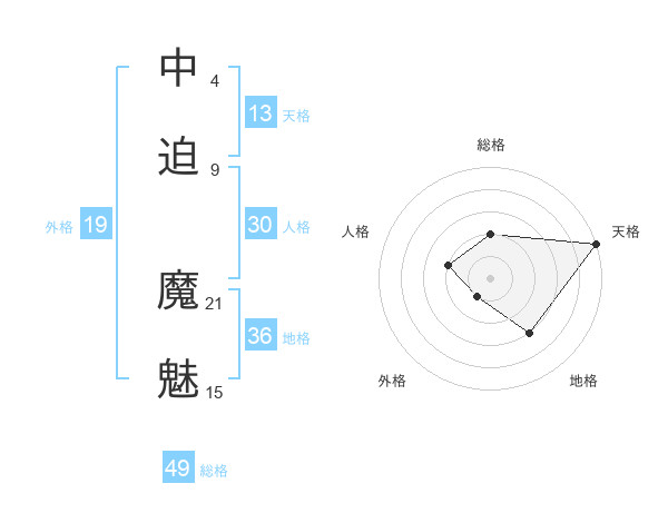 中迫 魔魅さんの総格は49画の2点!